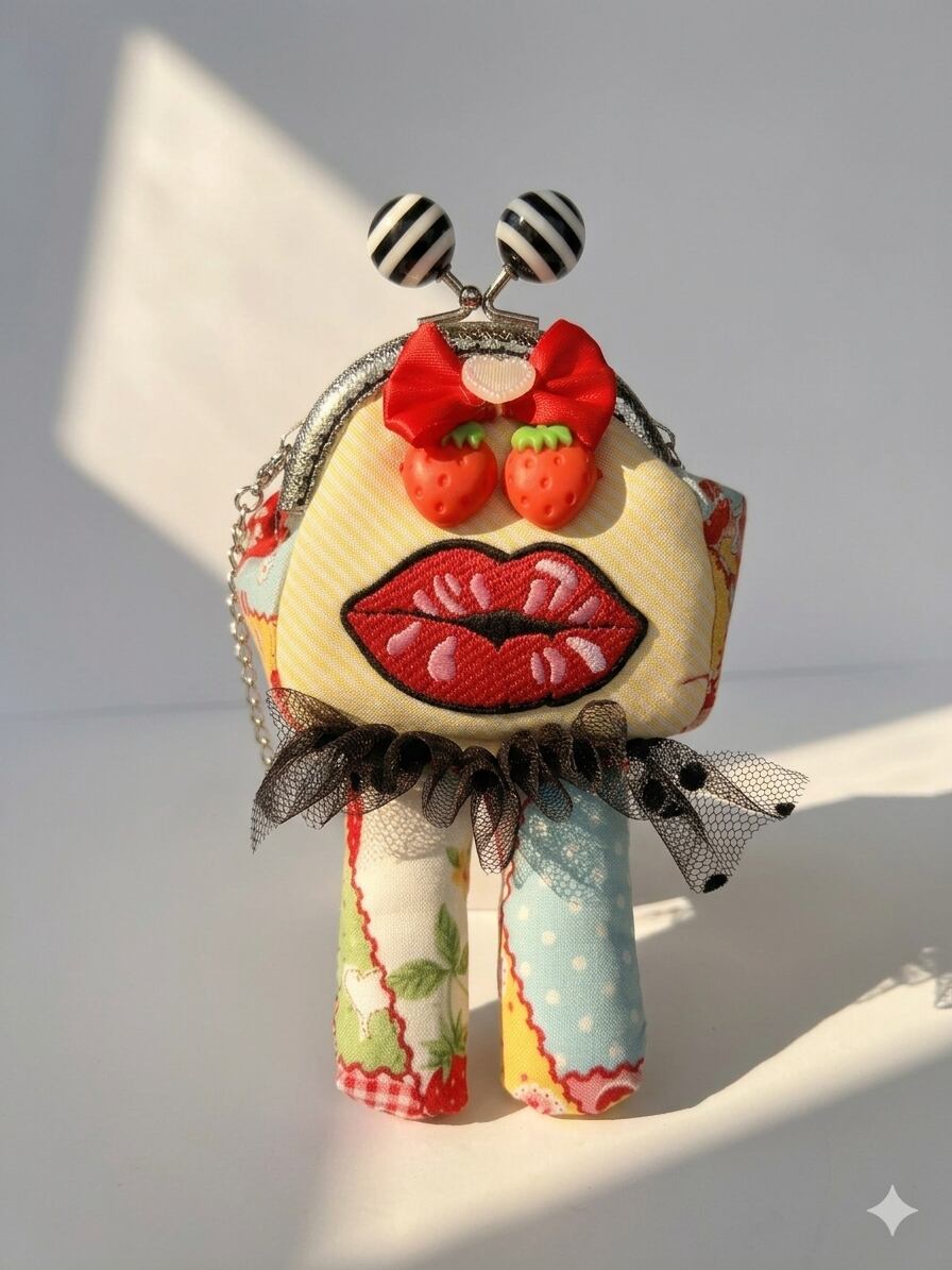 ロボットがま口(セクシーリップ赤+黒玉)