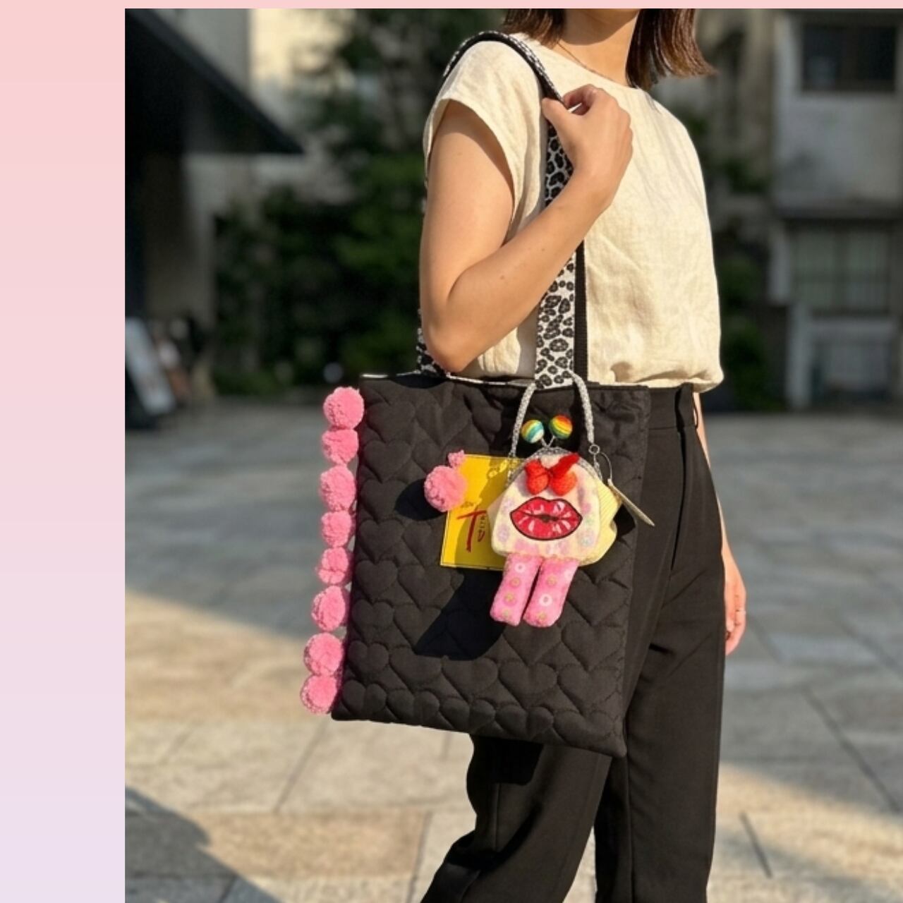♡ストラップでカバンの外に付けられる便利さ