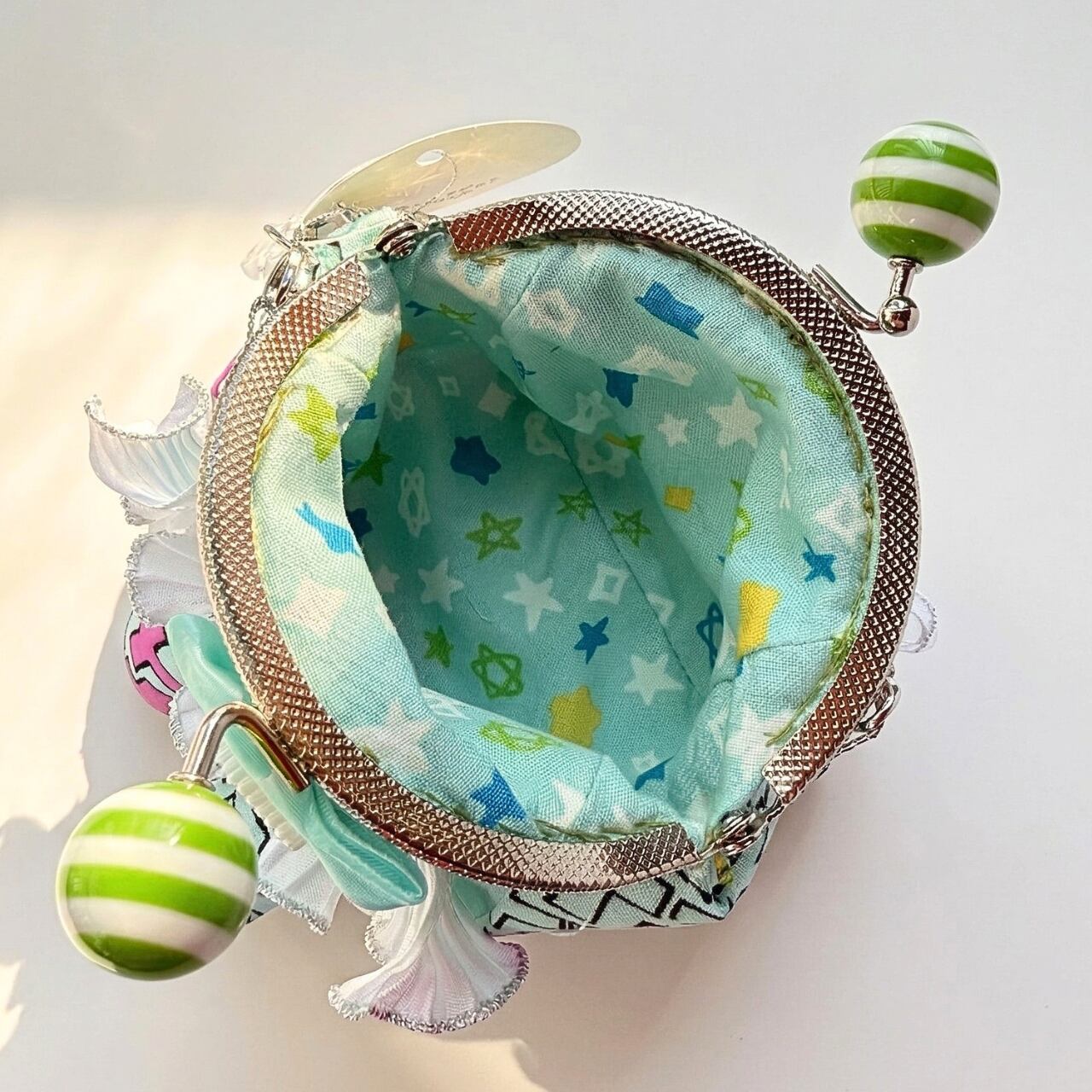キャンディのようなストライプの大きな口金(つまみ)や、